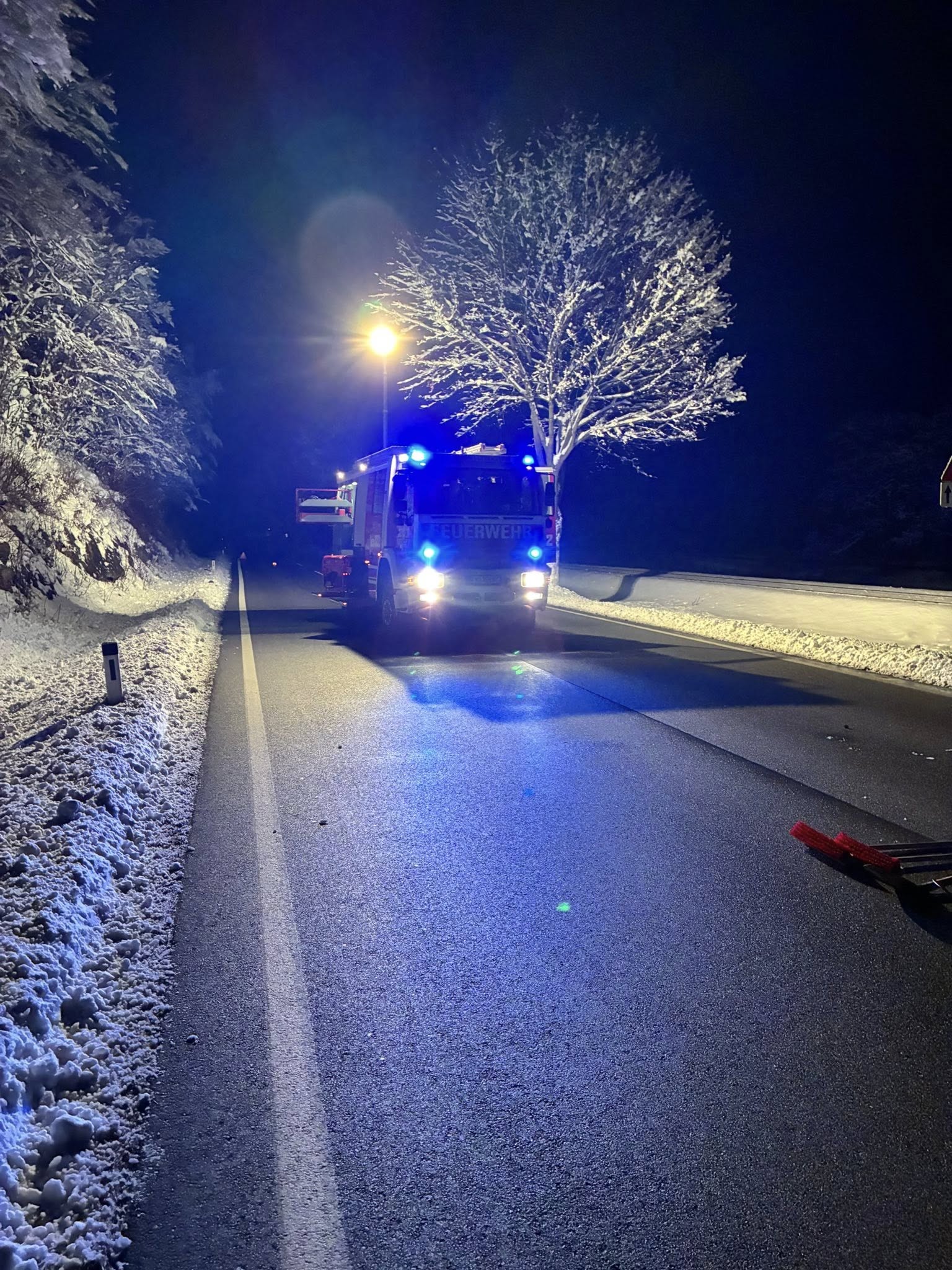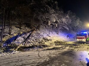 In der Nacht auf den 21. Februar wurden wir um 02:28 Uhr zu einem Einsatz „Baum auf Straße“ auf die B54 alarmiert.