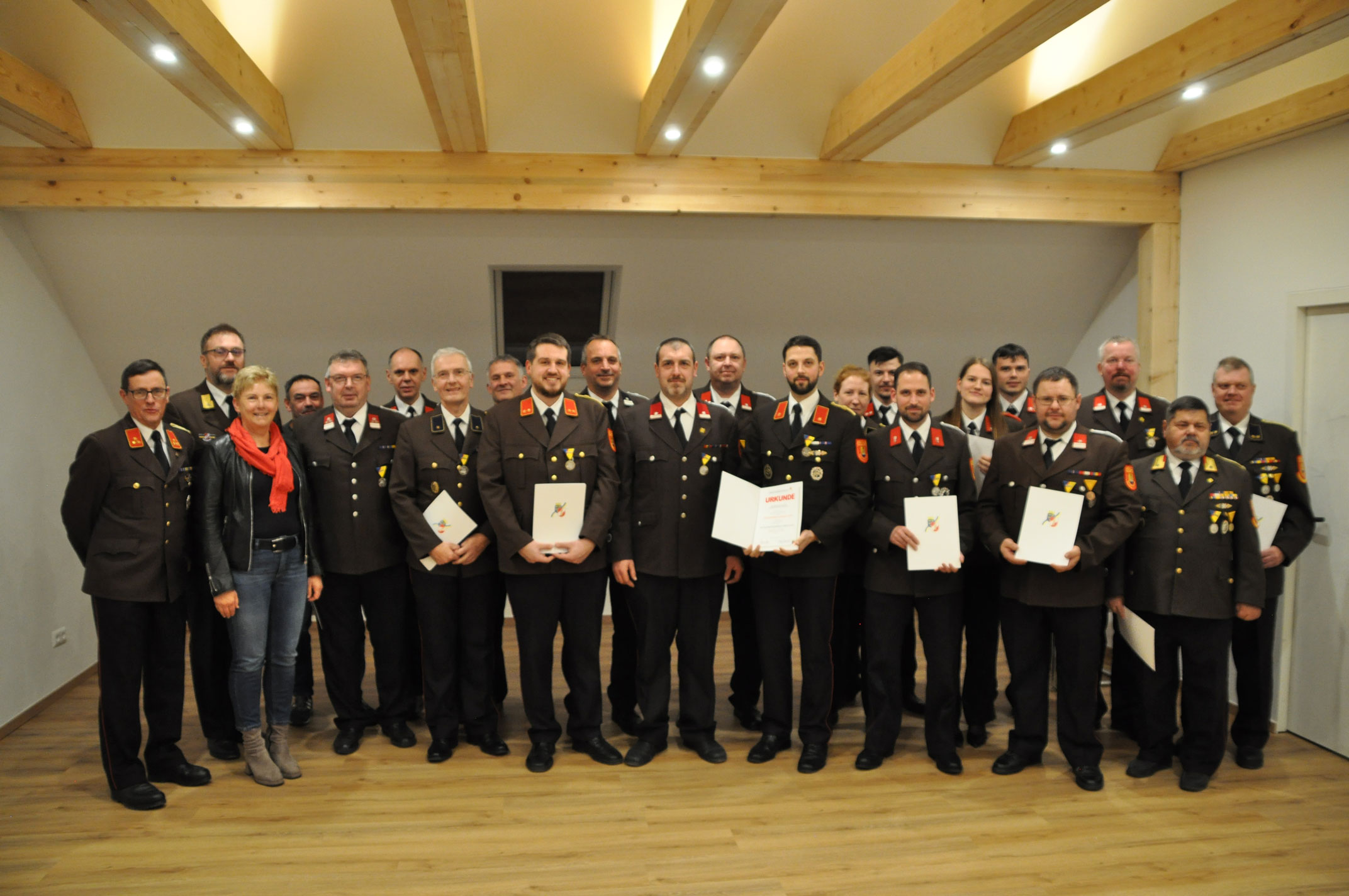 Im Anschluss wurde vom Abschnittskommando Neunkirchen an 19 Einsatzkräfte die Katastropheneinsatzmedaille des Niederösterreichischen Landesfeuerwehrverbandes verliehen für den Hochwassereinsatz im September 2024.