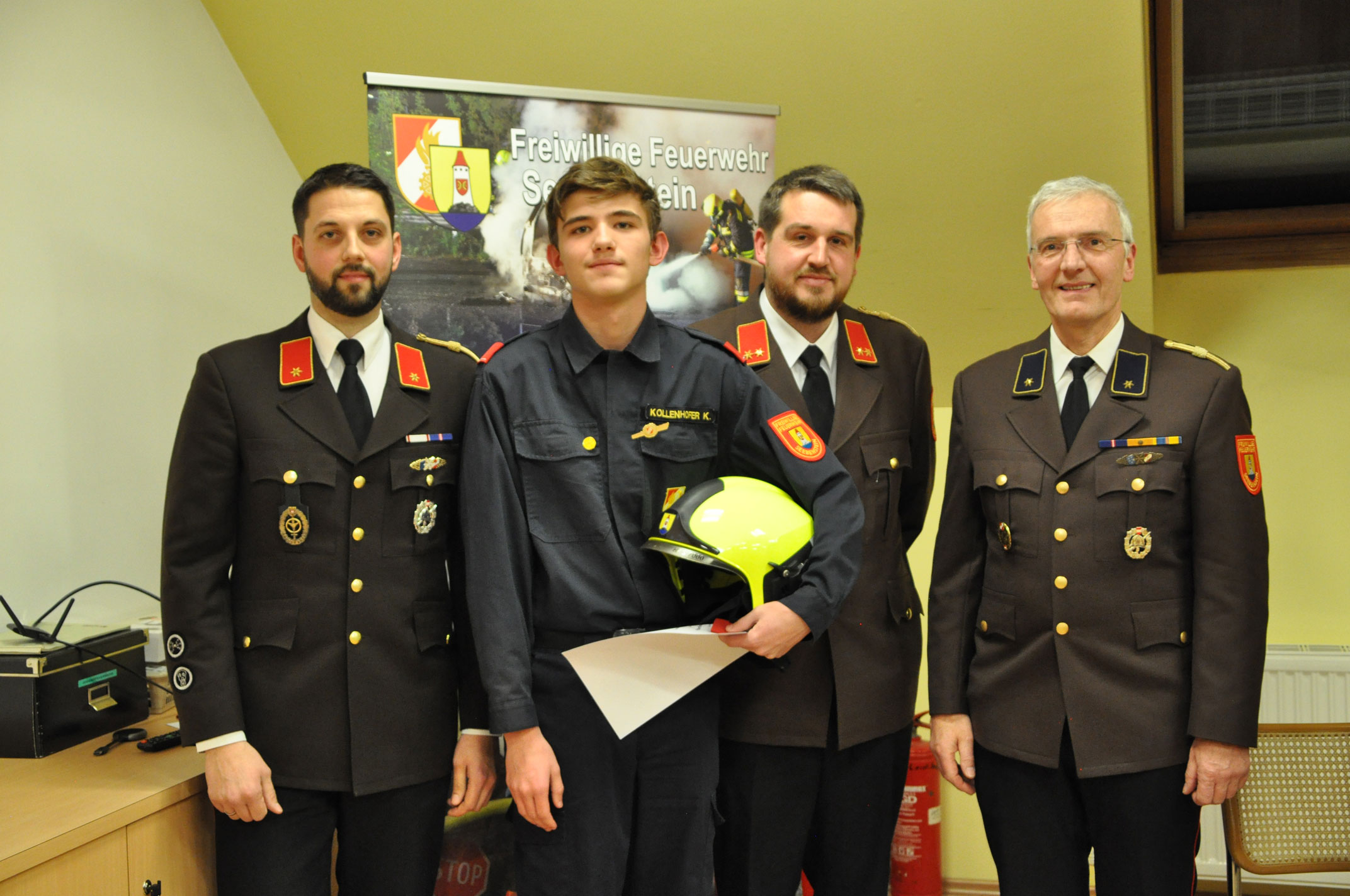 Sehr erfreulich ist auch eine weitere Beförderung von der Jugend in den Aktivstand sowie 5 Beförderungen vom Probefeuerwehrmann zum Feuerwehrmann.